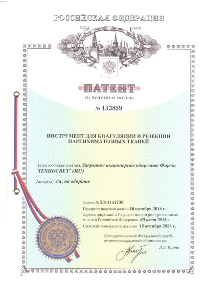 Патент № 153859 с приоритетом от 16.10.2014. .зарег. 10.08.2015