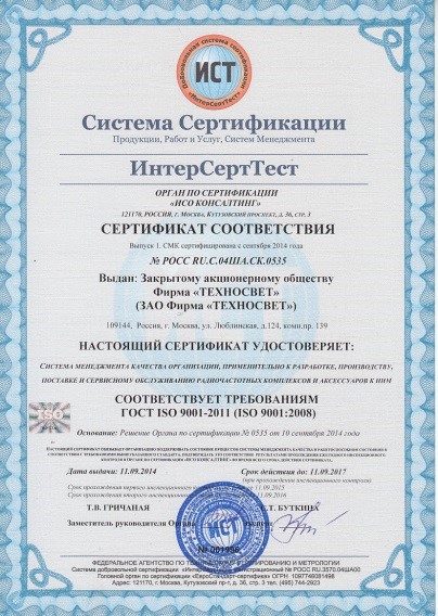 Отчет № 4-9/15, ЗАО Фирма «Техносвет», М., 2015, гос. рег. № 215081070008.